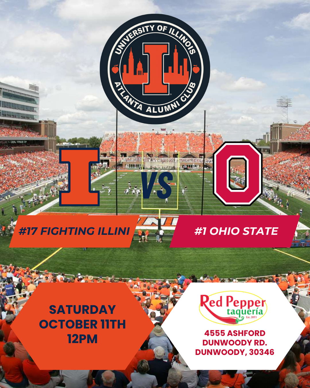 #17 ILLINI vs #1 Ohio State - Oct 11th @ noon - Red Pepper Taqueria Dunwoody